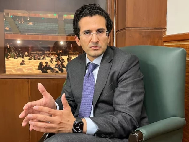 Minister for Petroleum and Natural Resources Ali Pervaiz Malik speaks during an interview with Reuters, during the Pakistan Minerals Investment Forum 2025, in Islamabad, Pakistan April 8, 2025. Photo: Reuters
