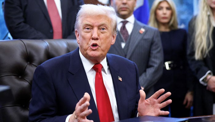 US President Donald Trump speaks, during the swearing-in ceremony for Sergio Gor as US Ambassador to India, at the White House in Washington, DC, US, November 10, 2025. — Reuters